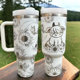 30oz or 40oz Tumbler with Handle Baby Highland Cow Sunflower tumbler|Personalized water bottle, Birthday Anniversary Tumbler Gift HFN