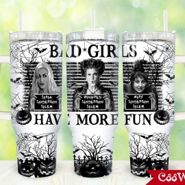 Halloween Horror Characters Bad Girls Have More Fun 30oz or 40oz Tumbler with Handle, Hocus Pocus Fan Gift, Birthday Anniversary Tumbler Gift HFN