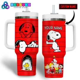 Snoopy Cartoon Custom Name Red Quencher 30oz Or 40oz Stainless Steel Tumbler With Handle HG