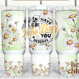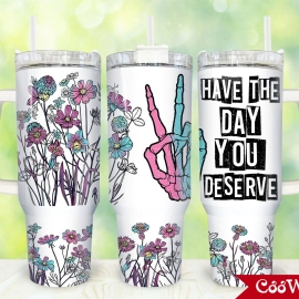 Have The Day You Deserve 30oz or 40oz Tumbler with Handle, Birthday Anniversary Tumbler Gift HFN Skeleton Hand Floral Tumbler, Floral Tumbler