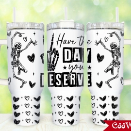 Have The Day You Deserve 30oz or 40oz Tumbler with Handle, Birthday Anniversary Tumbler Gift HFN Skeleton Heart Tumbler