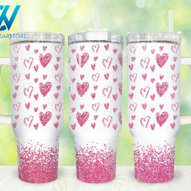 Heart Valentines Couple Love 30oz or 40oz Tumbler with Handle, Birthday Anniversary Tumbler Gift HFN