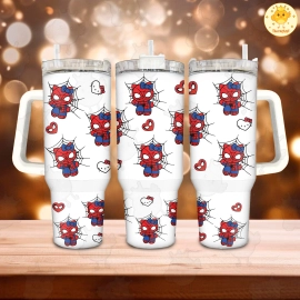 Superhero SpiderCat SpiderKitty 30oz or 40oz Tumbler with Handle, Birthday Anniversary Tumbler Gift HFN