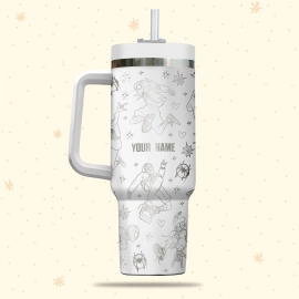 Tinkerbell Disney Cartoon 30oz or 40oz Quencher Stainless Steel Tumbler With Handle, Best Gift Idea NVA