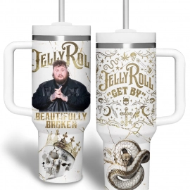 Jelly Roll Music Custom Stanley Quencher 30oz or 40oz Stainless Steel Tumbler With Handle HG