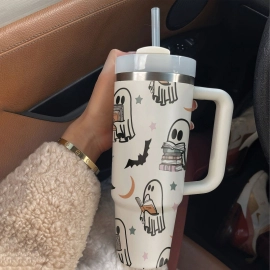 Ghost Reading Tumbler 30oz or 40oz With Handle, Funny Halloween Ghost , Cute Spooky Halloween Bookish 30oz or 40oz Bottle HG