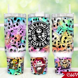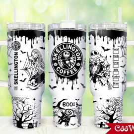 Nightmare Before Christmas Skellington Coffee Horror Movies Characters 30oz or 40oz Tumbler with Handle, Couple Jack And Sally Fan Gift, Birthday Anniversary Tumbler Gift HFN