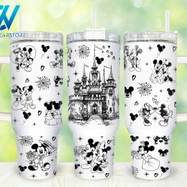 Mickey And Minnie Disney Cartoon Custom Stanley Quencher 30oz or 40oz Stainless Steel Tumbler With Handle HG
