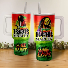 Bob Marley Music Custom Stanley Quencher 40oz Stainless Steel Tumbler HG With Handle