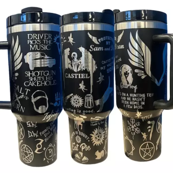Supernatural Inspired Engraved Tumbler 30 oz or 40oz With Handle Straw Lid Gift for Him Gift for Her HCA