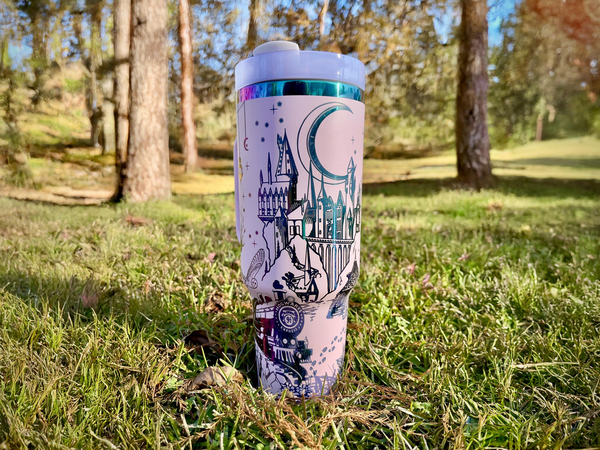 Wizard Inspired 40 oz Custom Engraved Tumbler Mug, Magic and Spells Design Stainless Steel Cup, Witchcraft and Wizardry School Drinkware HFN