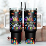 In A World Where You Can Be Anything Be Kind Artwork Custom Quencher 30oz Or 40oz Stainless Steel Tumbler With Handle HG