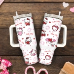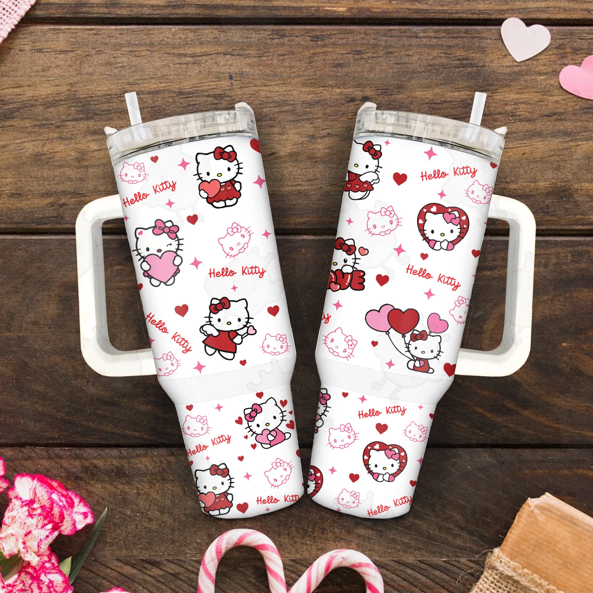 Pink Hello Kitty Valentine 30oz or 40oz Tumbler with Handle, Gift for Kitty fan, Birthday Anniversary Tumbler Gift HFN