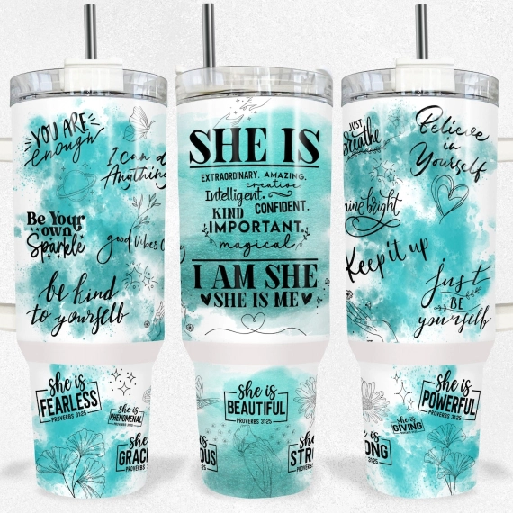 She Is Me Daily Affirmations 30oz or 40oz Tumbler Positive Affirmations Tumbler Gift For Her Him Birthday Gift LN