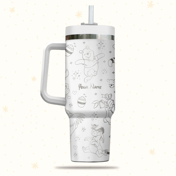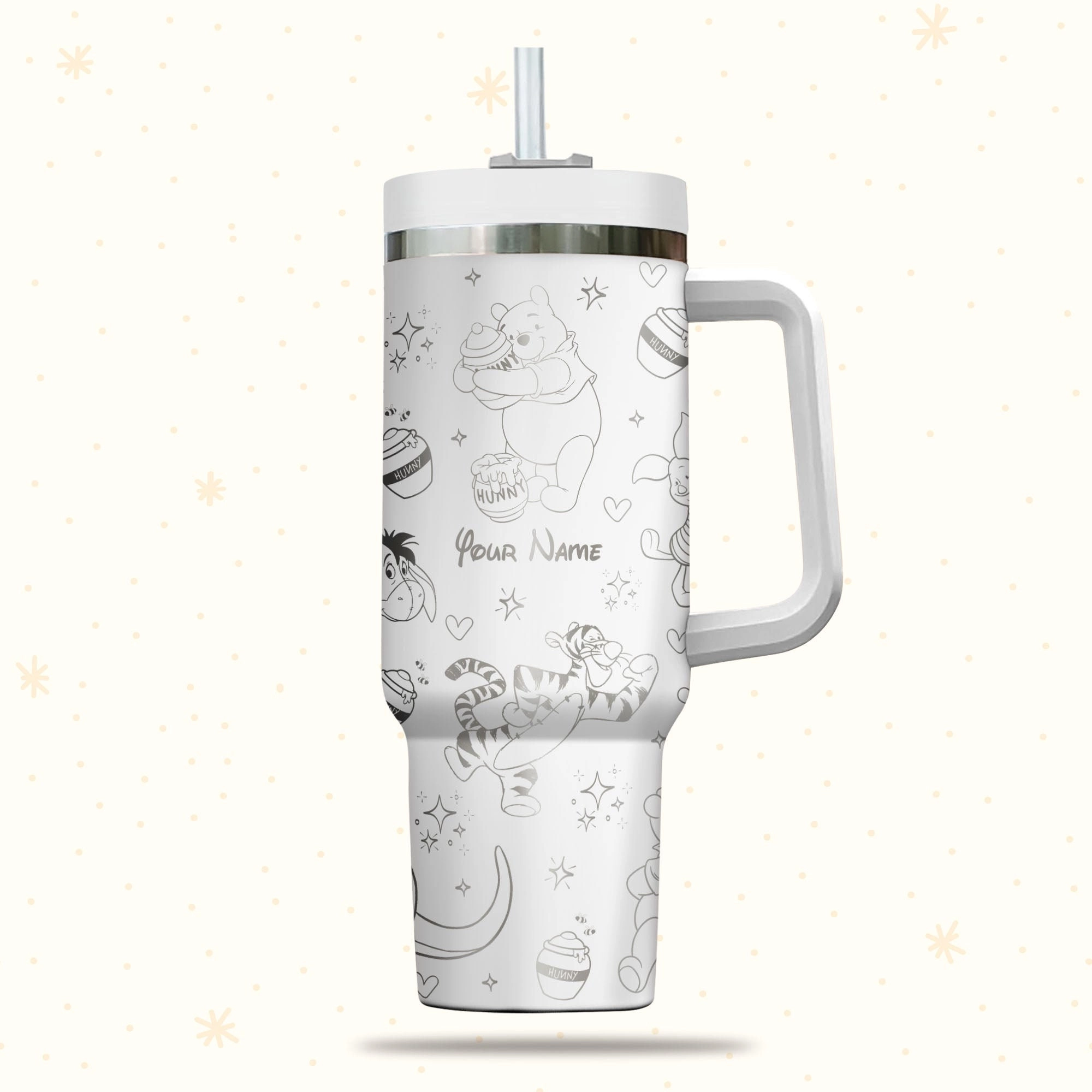 Winnie The Pooh Disney Cartoon 30oz or 40oz Quencher Stainless Steel Tumbler With Handle, Best Gift Idea NVA