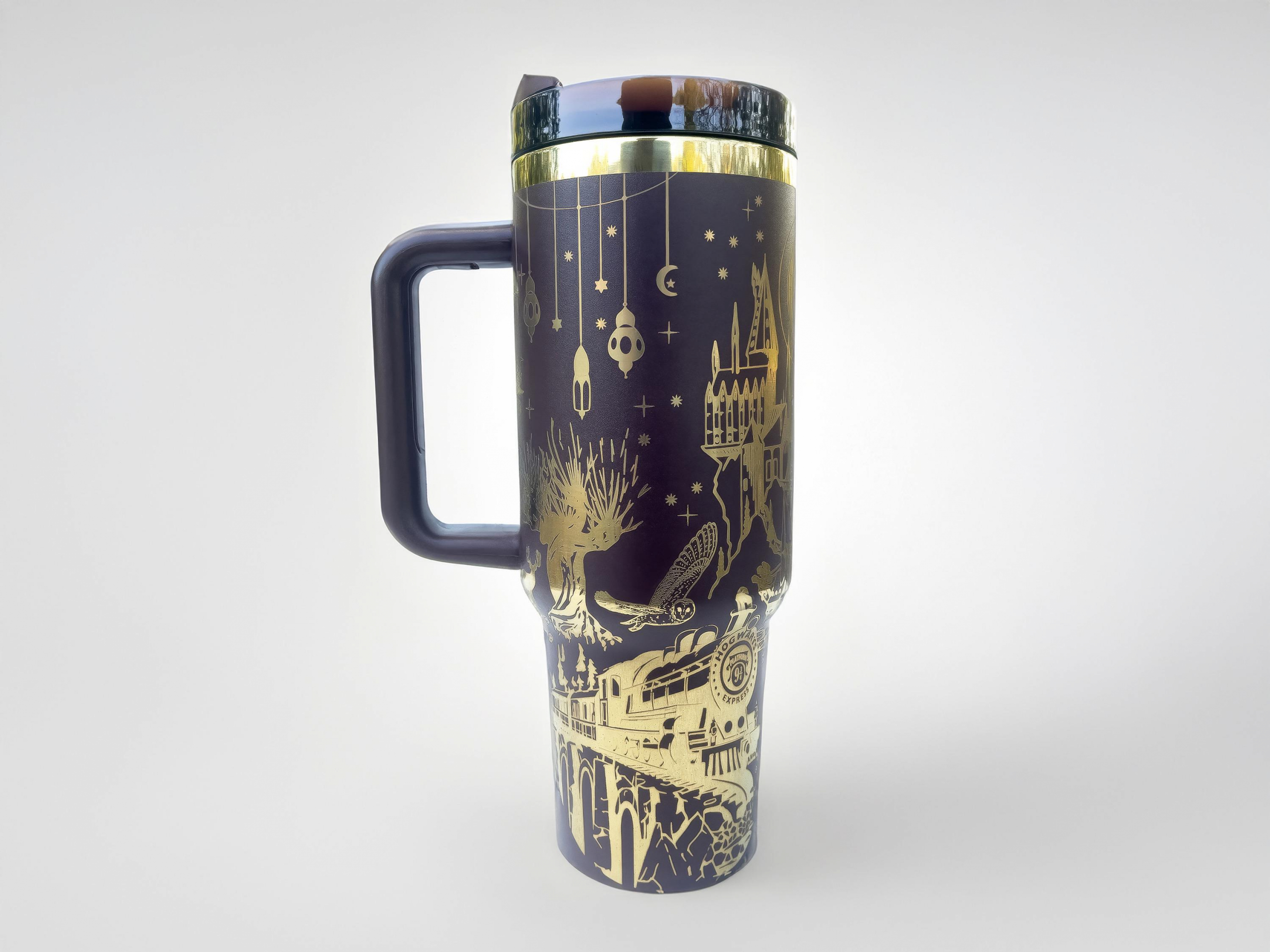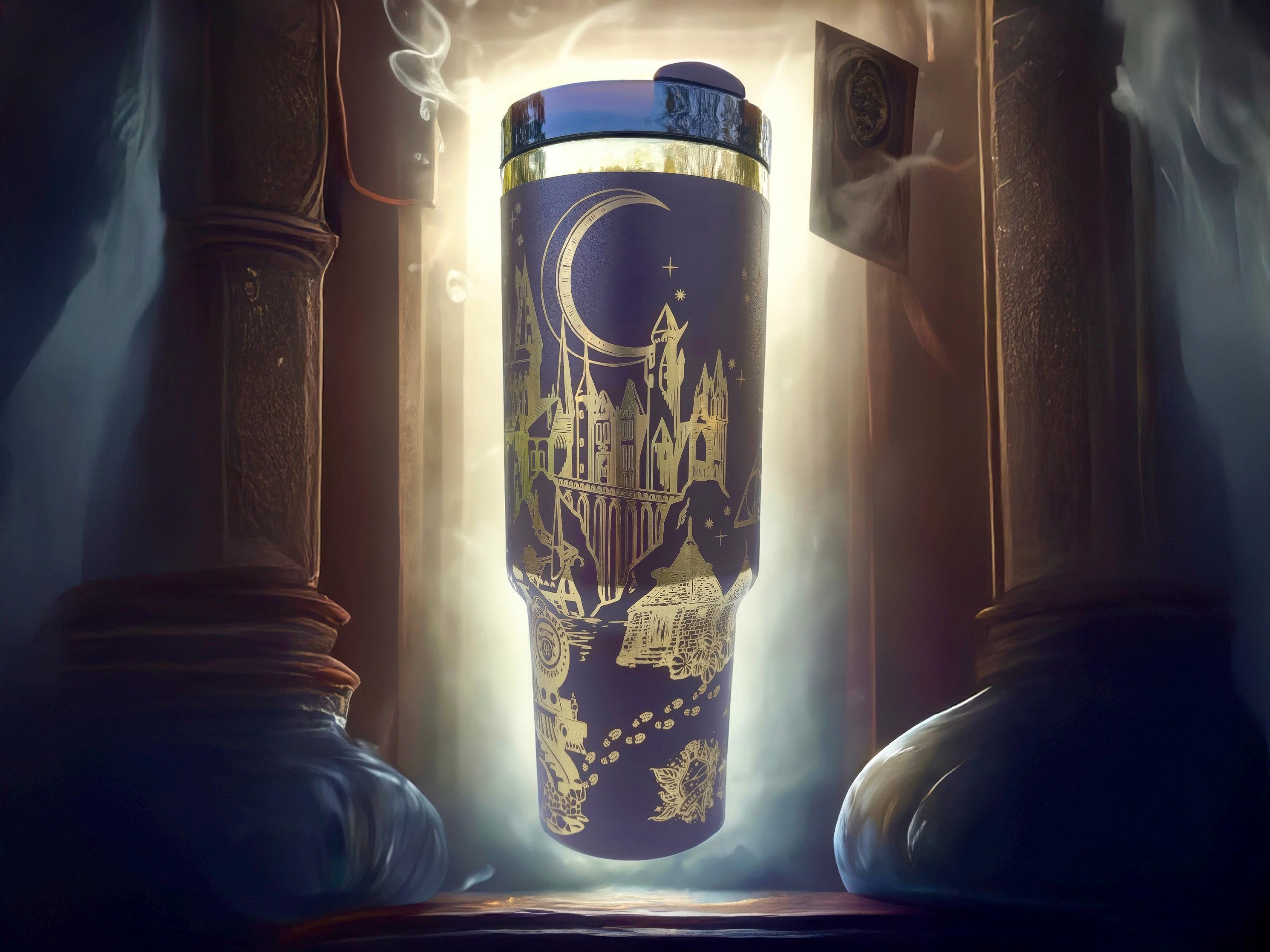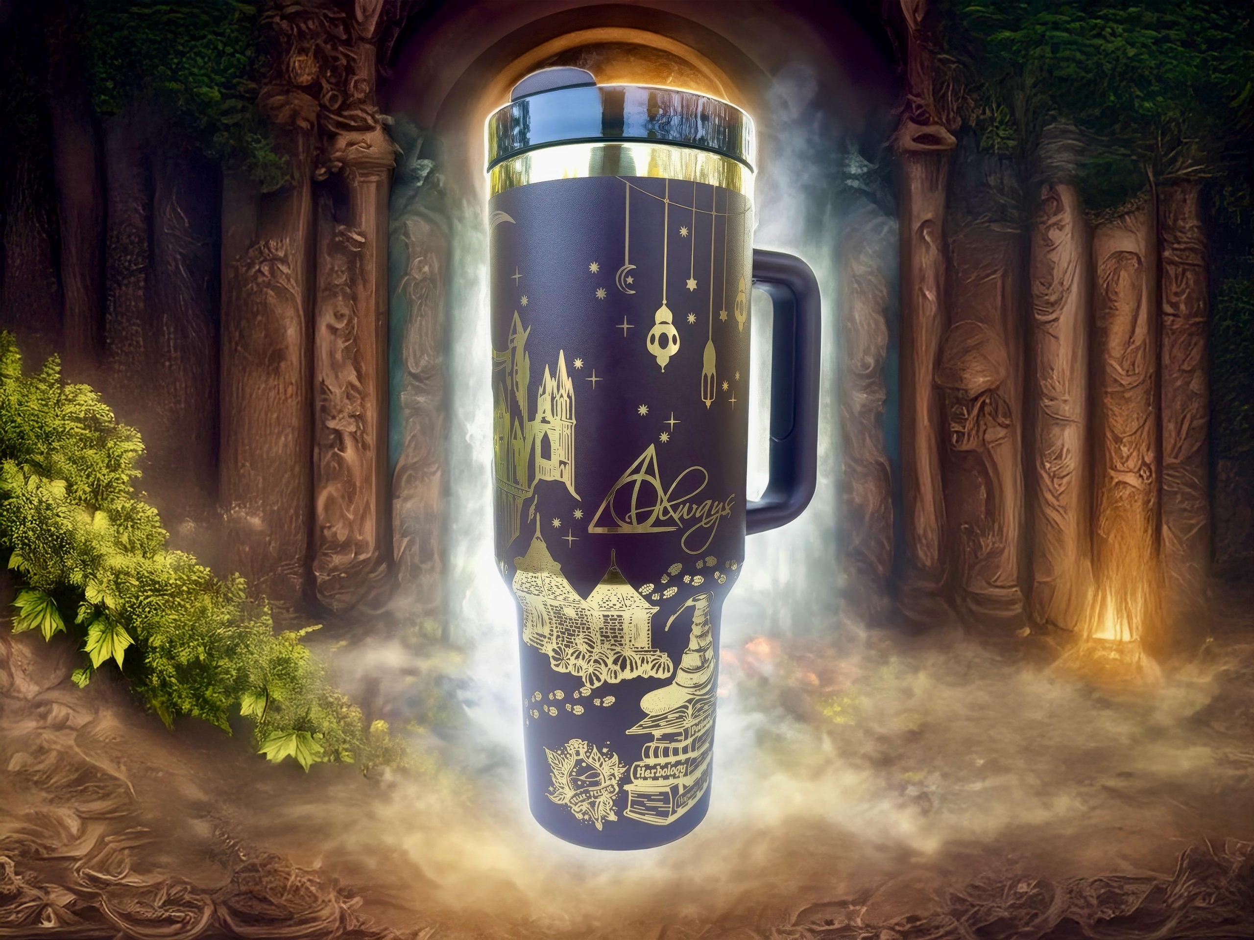Wizard Inspired 40 oz Custom Engraved Tumbler Mug, Magic and Spells Design Stainless Steel Cup, Witchcraft and Wizardry School Drinkware HFN