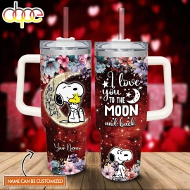 Custom Name Snoopy I Love You To The Moon amp Back 40oz Stainless Steel Tumbler with Handle and Straw Lid HG