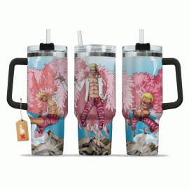 Donquixote Doflamingo One Piece Anime Custom 30oz or 40oz Quencher Stainless Steel Tumbler With Handle, Best Gift Idea NVA, Best Gift Idea NVA