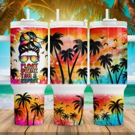 Float Drink Tan Repeat 30oz or 40oz Quencher Tumbler Gift For Her Him Birthday Gift LN Summer Tumbler s Messy Bun Summer Vibes Beach Tumbler