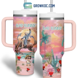 Bad Bunny Most Wanted Tour Music Custom Stanley Quencher 40oz Stainless Steel Tumbler HG With Handle