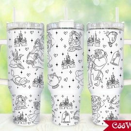Beauty and The Beast Movies Characters 30oz or 40oz Tumbler with Handle, Gift for Disney Fan, Birthday Anniversary Tumbler Gift HFN