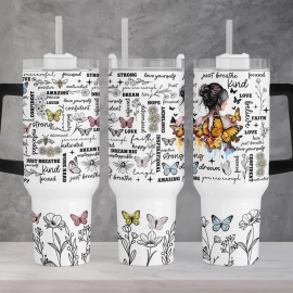 Positive Affirmations Tumbler Butterflies Inspirational Quotes s Positive 30oz or 40oz Tumbler Summer Quencher Tumbler Gift For Her Him Birthday Gift LN