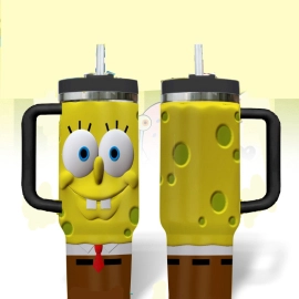 SpongeBob SquarePants Cartoon Custom Stanley Quencher 30oz or 40oz Stainless Steel Tumbler With Handle HG