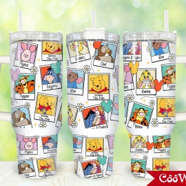 Vintage Pooh and Friends Polaroid 30oz or 40oz Tumbler with Handle, Gift for Winnie The Pooh Fan, Birthday Anniversary Tumbler Gift HFN
